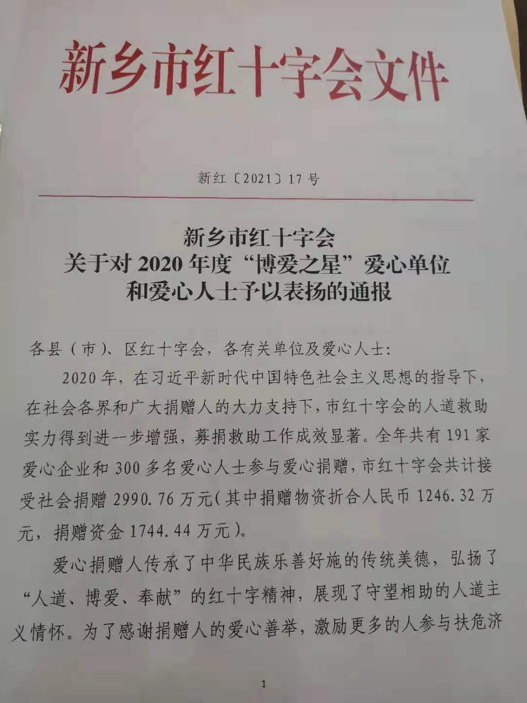 【温暖力量】民建会员企业诚城集团被新乡市红会评为“博爱之星”爱心单位 发布时间:2021/04/20 浏览次数:次 发布人:民建新乡市委