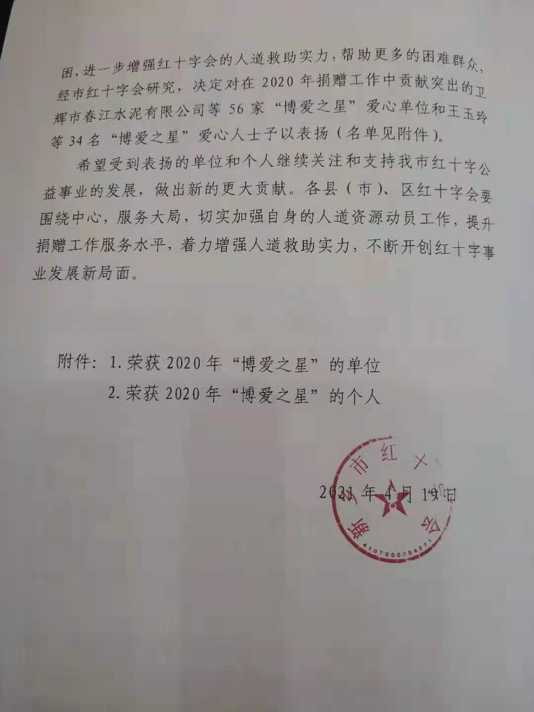 为传承中华民族乐善好施的传统美德,弘扬“人道、博爱、奉献”的红十字精神,展现守望相助的人道主义情怀,激励更多的人参与扶危济困,经市红十字会研究,决定对在2020年捐赠工作中贡献突出的56家“博爱之星”爱心单位和34名“博爱之心”爱心人士予以表扬。