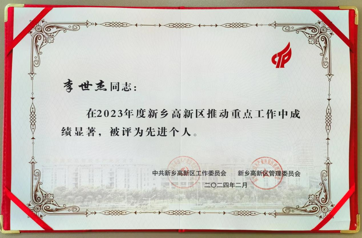 3月11日,新乡市高新区召开了2023年度高质量发展综合表彰大会,新乡民建高新支部副主委李世杰荣获先进个人荣誉。