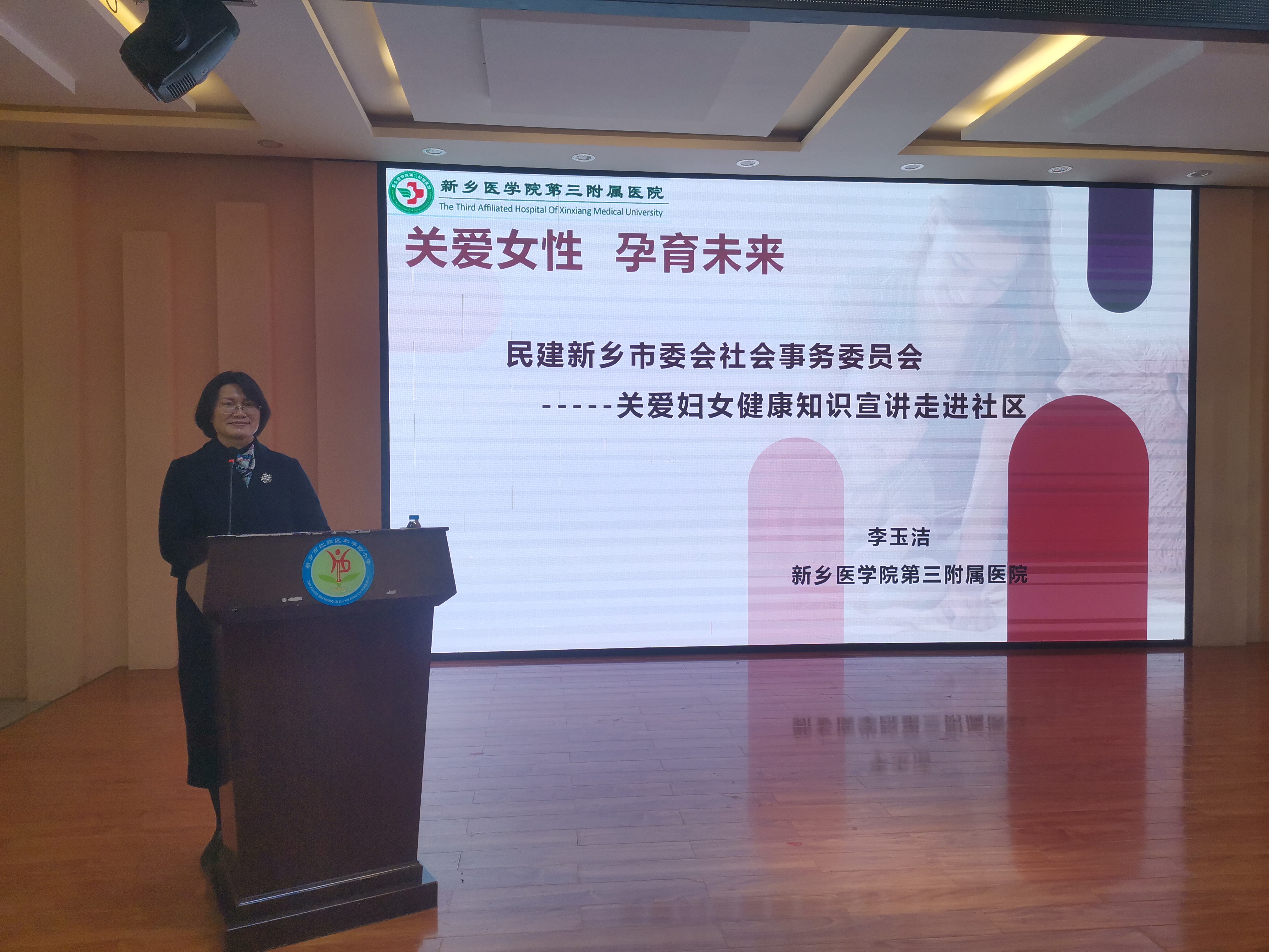 社会事务委员会委员、新乡医学院第三附属医院主任医师、生殖医学科主任李玉洁教授以《关爱女性 孕育未来》为题,通过形象生动的图片和丰富深厚的专业知识,用浅显易懂的语言为大家讲解了女性生理健康的重要性和常见妇科病的临床表现、防治措施、女性日常正确的生活习惯,健康孕育知识以及女性保健的误区等,并倡导女性朋友们养成良好的生活习惯,树立健康意识,提升身体素质。